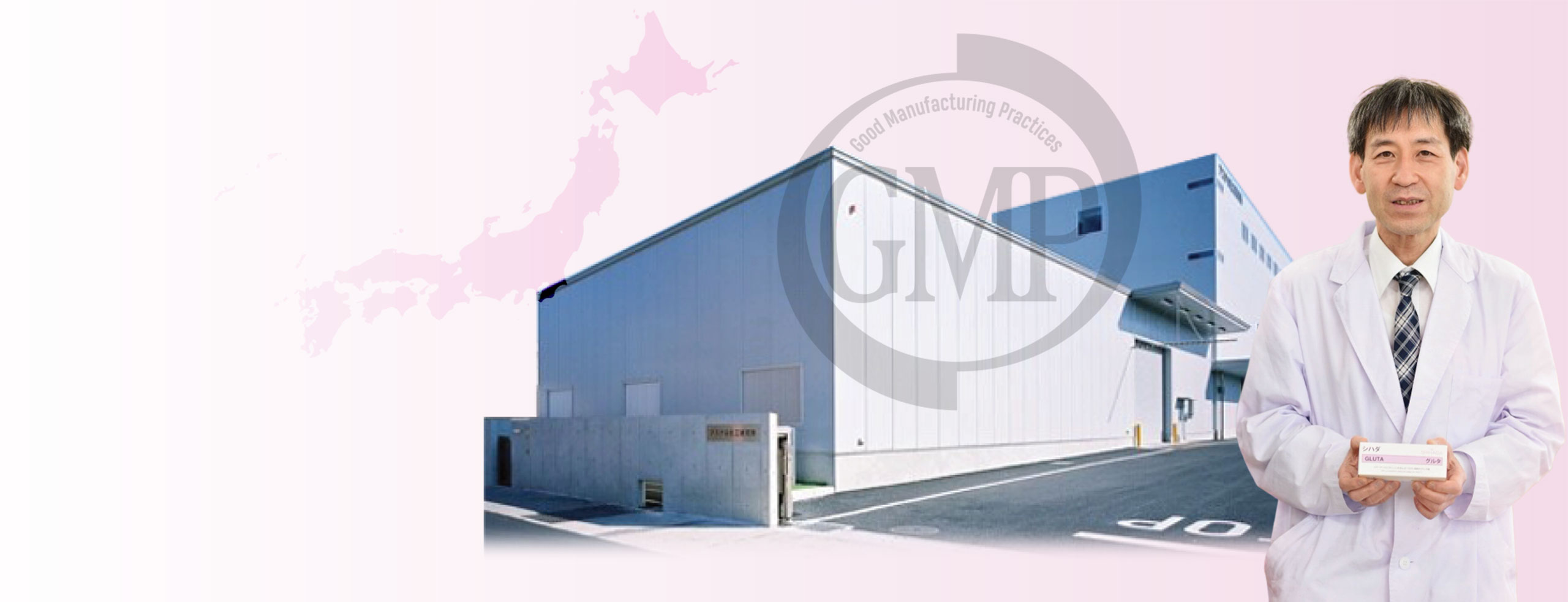 グルタタイオンの生産工場は大阪にあります。我々の工場は手ごろな価格で製品の安全・品質をあげるためのアプローチ方法を考えており、それから、製品の特性を決まります。例えば、製品の色・匂い・肌を触る感じなどです。多くのお客様のニーズのために8年以上に一番良いグルタタイオンになるために、製品を実行しています。我々の工場は47年間設立されて、栄養補助食品として日本全国で人気があります。